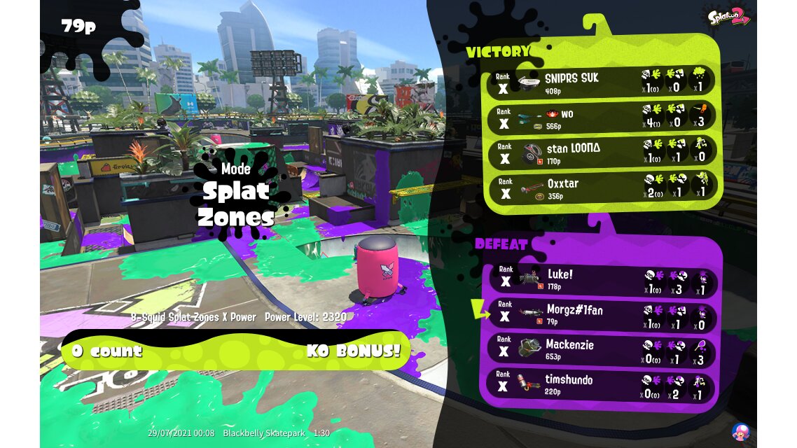 | Mode | Splat Zones - Ranked Battle | ||||||||||||||||