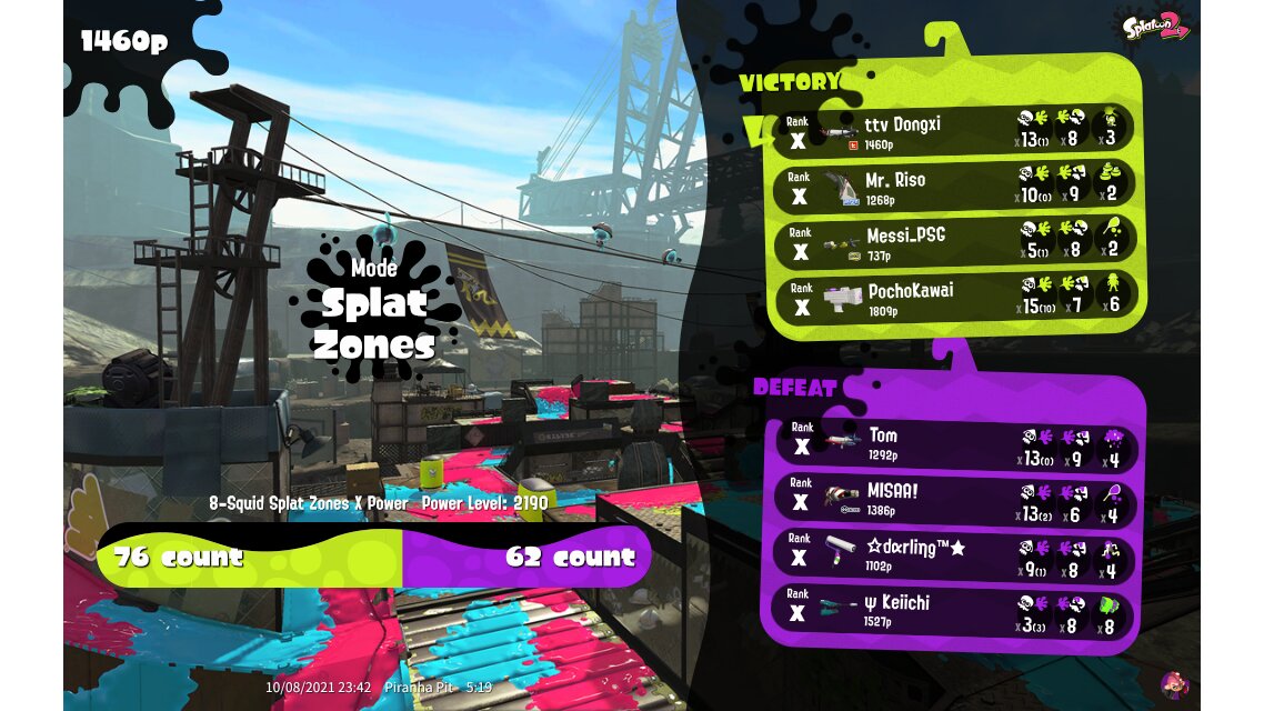 | Mode | Splat Zones - Ranked Battle | ||||||||||||||||