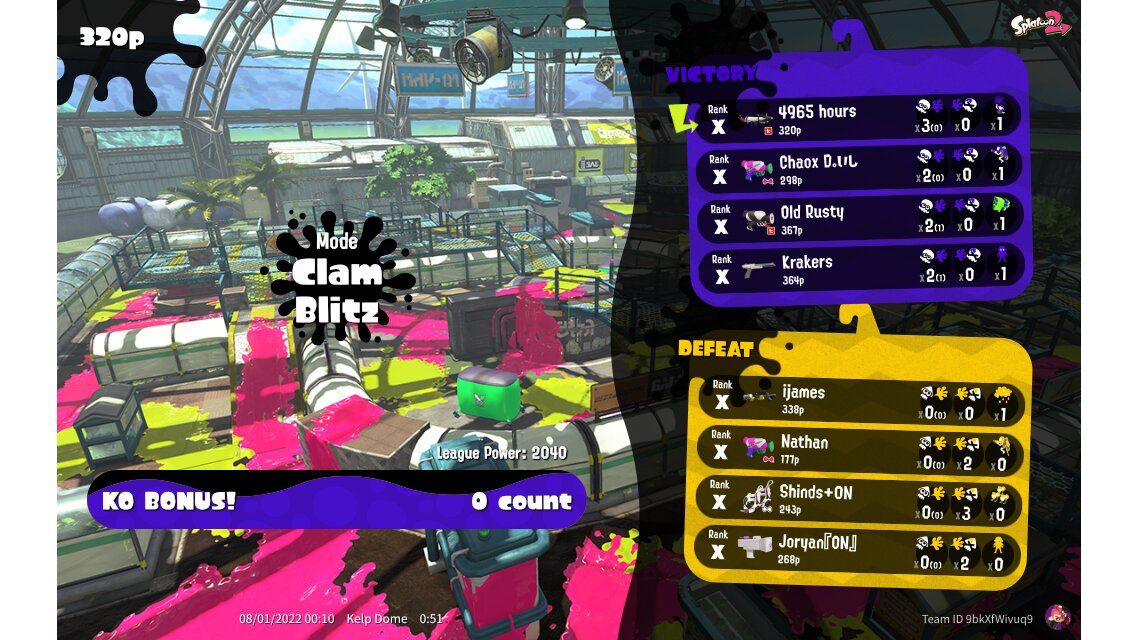 | Mode | Clam Blitz - League Battle (Quad) | ||||||||||||||||