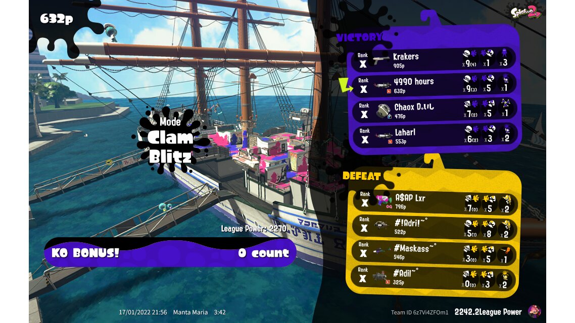 | Mode | Clam Blitz - League Battle (Quad) | ||||||||||||||||