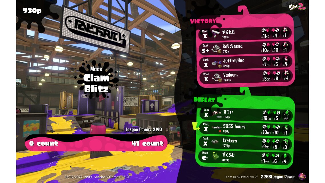| Mode | Clam Blitz - League Battle (Twin) | ||||||||||||||||