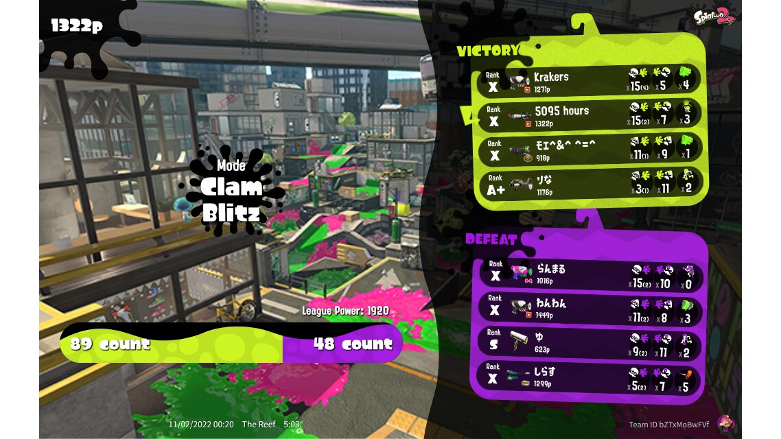 | Mode | Clam Blitz - League Battle (Twin) | ||||||||||||||||