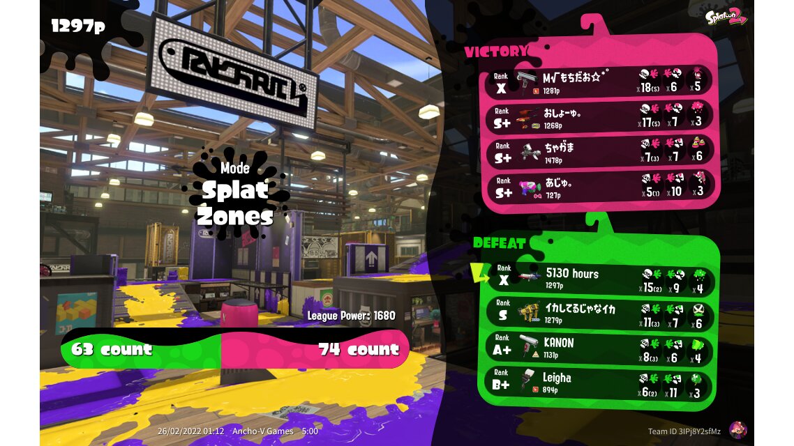 | Mode | Splat Zones - League Battle (Twin) | ||||||||||||||||