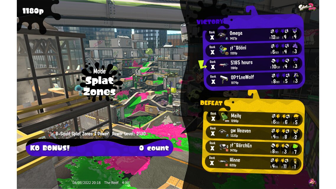 | Mode | Splat Zones - Ranked Battle | ||||||||||||||||