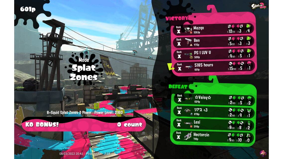 | Mode | Splat Zones - Ranked Battle | ||||||||||||||||