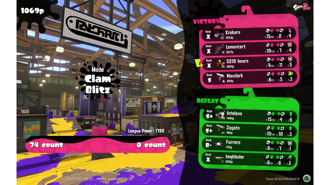 Mode | Clam Blitz - League Battle (Twin) | ||||||||||||||||||||||||||||||||||