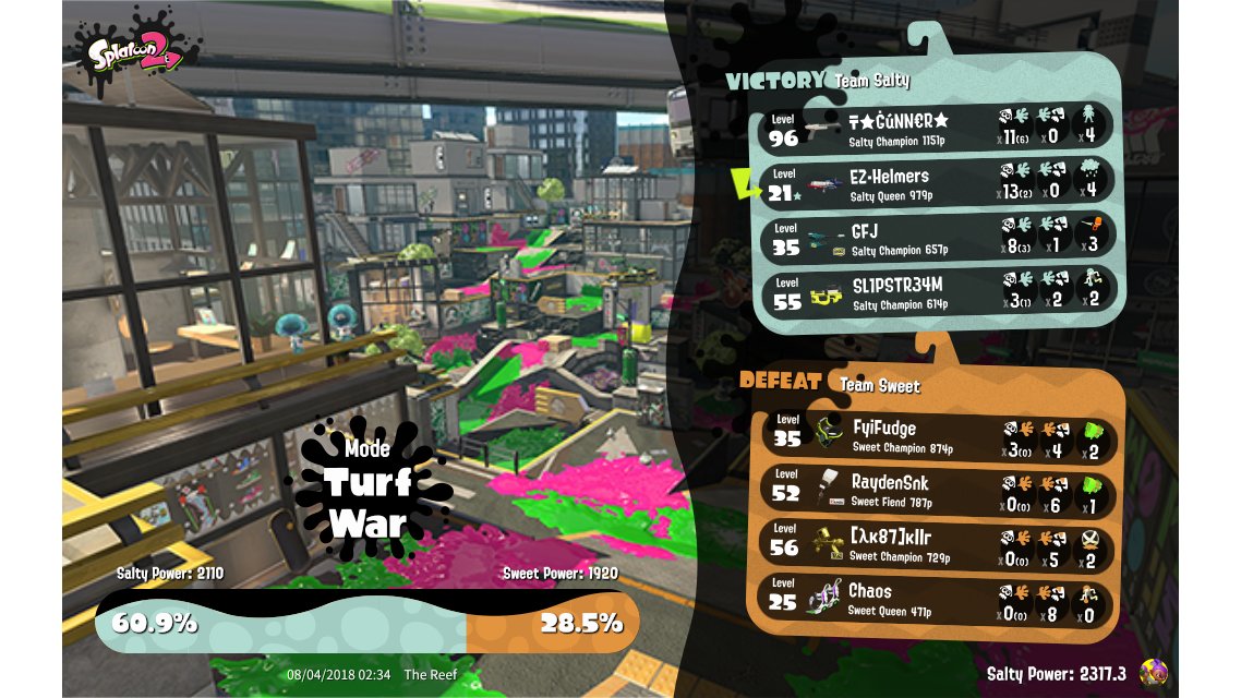 | Weapon | Splattershot Pro ( Point Sensor, Ink Storm) |