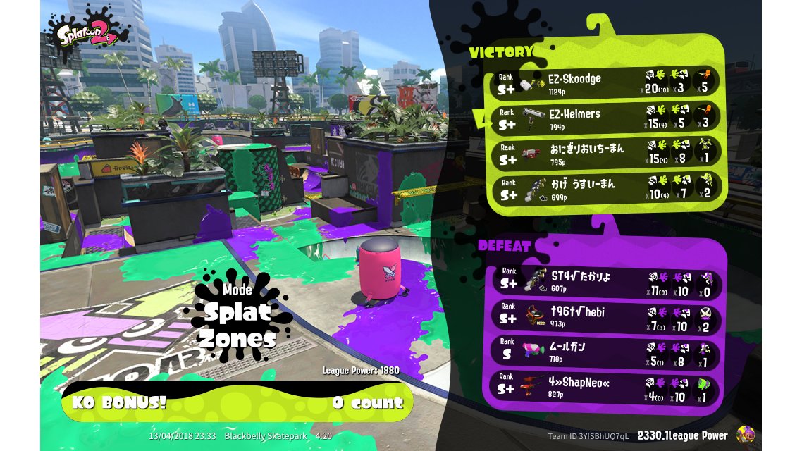 | Name | Weapon | Level | Rank | Inked | k+a/sp | k/d |