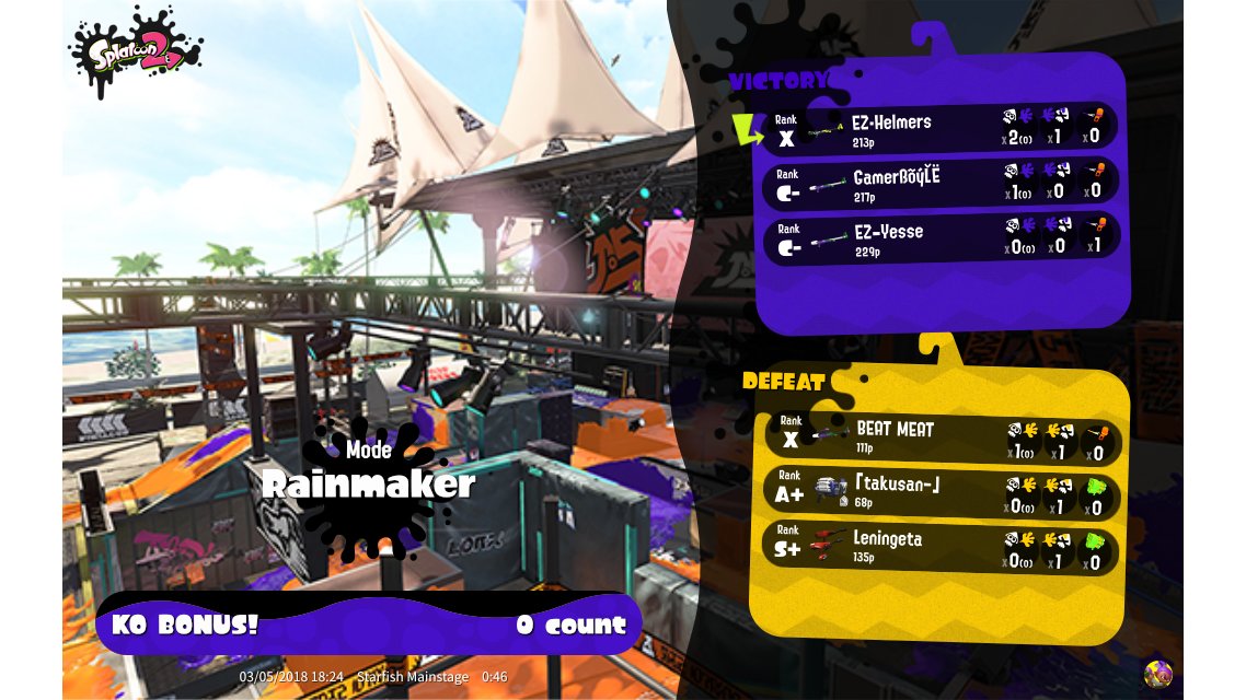 | Name | Weapon | Level | Rank | Inked | k+a/sp | k/d |