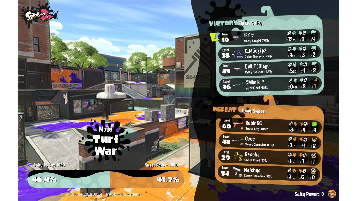 | Mode | Turf War - Splatfest (Team) | ||||||||||||||||||||||||||||