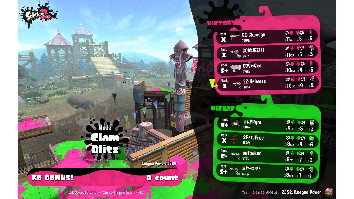 | Mode | Clam Blitz - League Battle (Twin) | ||||||||||||||||||||||||||||