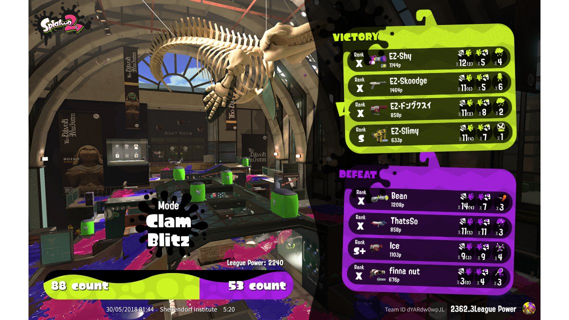 | Mode | Clam Blitz - League Battle (Quad) | |||||||||||||||||||||||||||||||