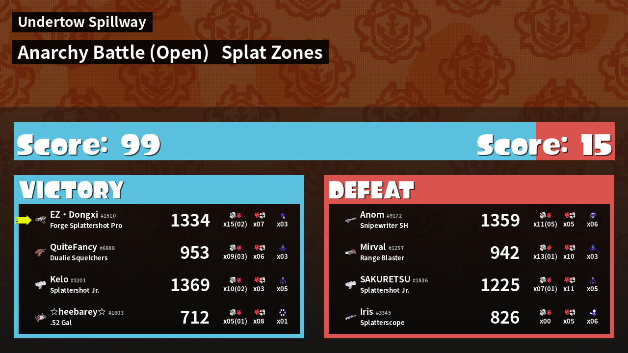 | Mode | Splat Zones - Anarchy Battle (Open) | ||