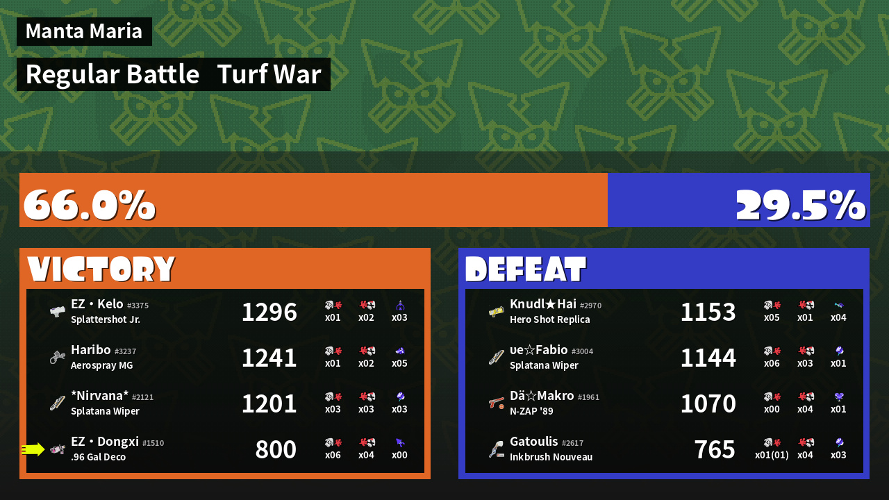 | Mode | Turf War - Regular Battle | ||