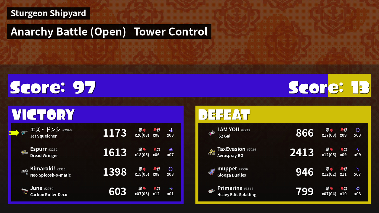 | Mode | Tower Control - Anarchy Battle (Open) | ||