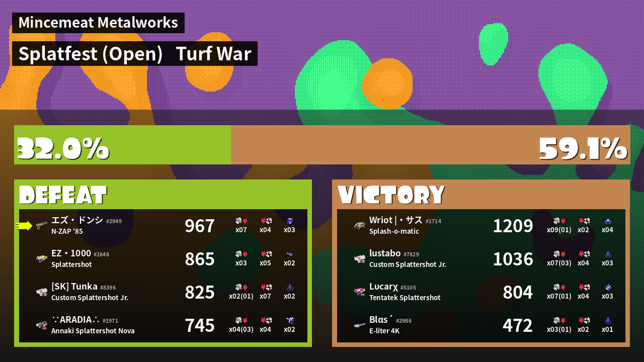 | Medals | #1 Overall Splatter #1 Turf Inker #1 Popular Target | ||