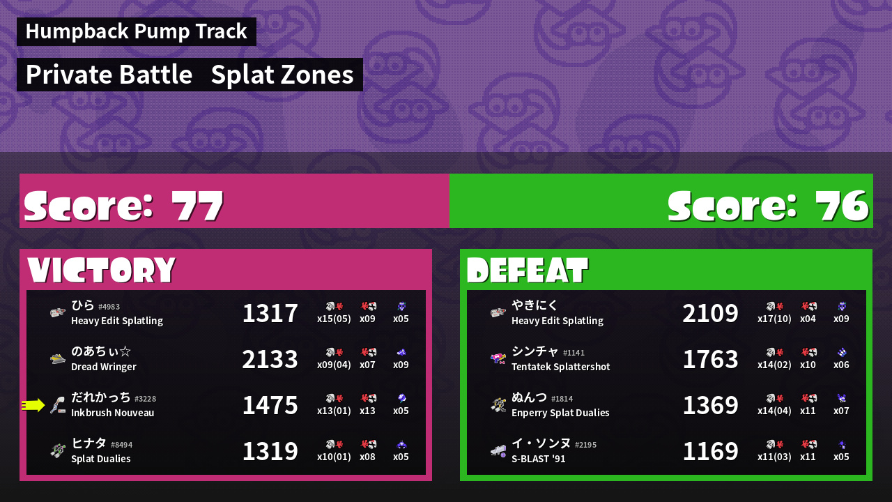 | Medals | #1 Enemy Splatter #1 Ground Traveler #1 Ultra Stamp User |