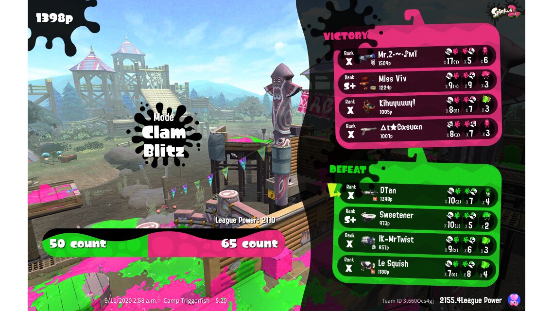 | Mode | Clam Blitz - League Battle (Twin) | ||||||||||||||||