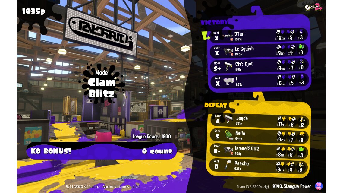 | Mode | Clam Blitz - League Battle (Twin) | ||||||||||||||||