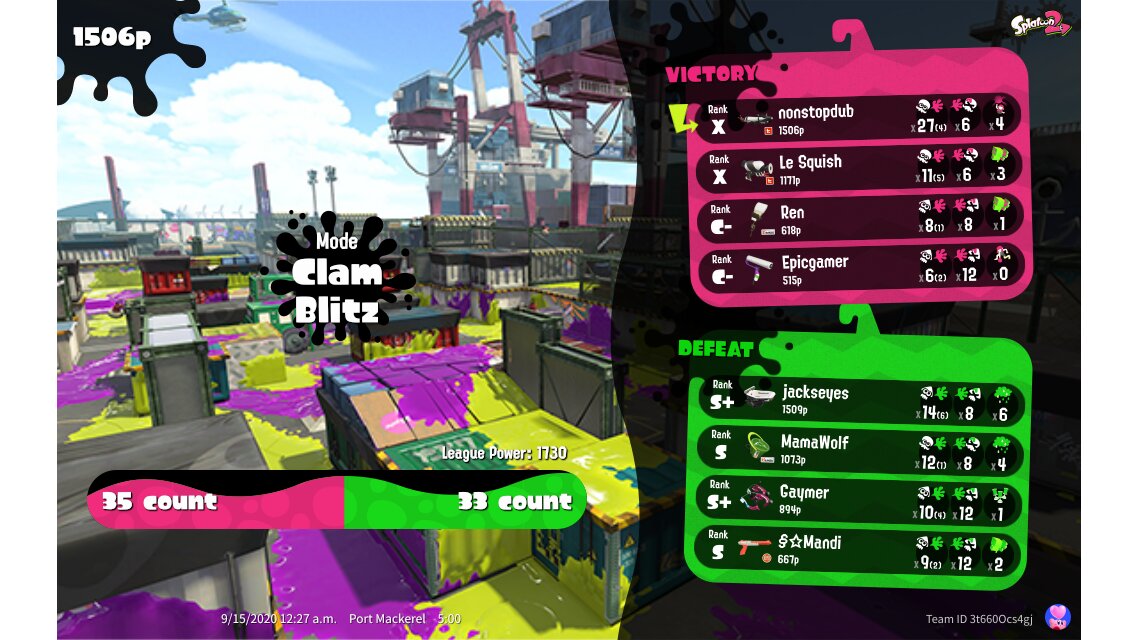 | Mode | Clam Blitz - League Battle (Twin) | ||||||||||||||||