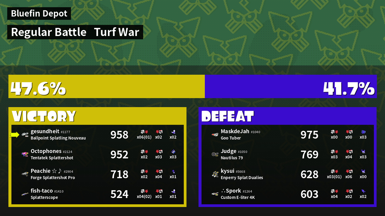 Kills / Deaths | 5 + 1 / 2 > Kill Ratio: 2.50 | ||