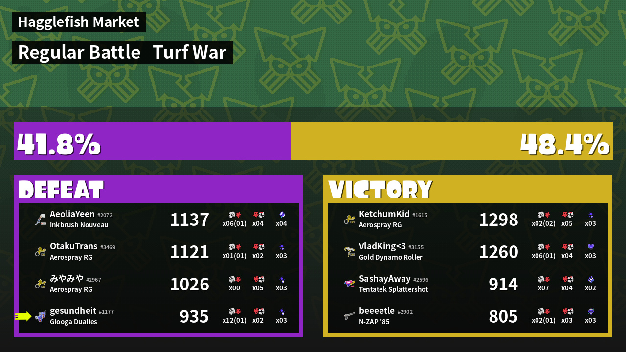 | Medals | #1 Overall Splatter #1 Popular Target #1 Enemy Splatter | ||