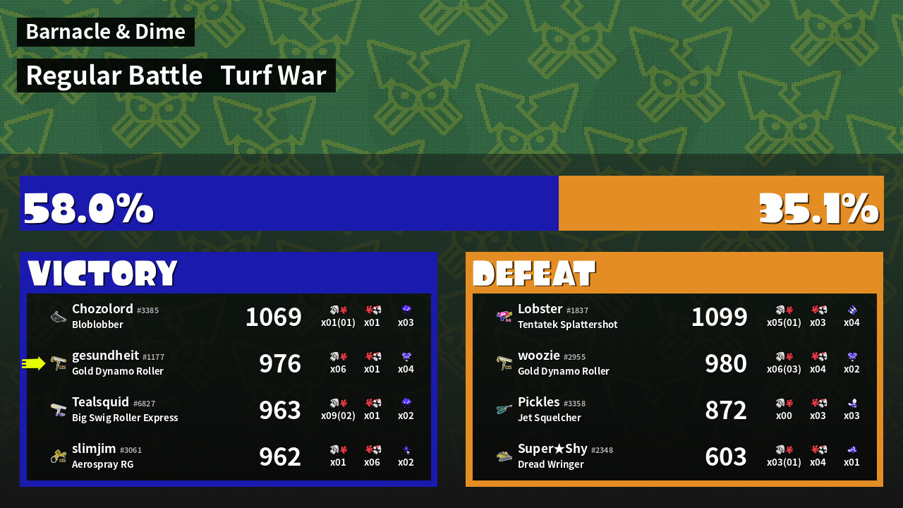 | Mode | Turf War - Regular Battle | ||