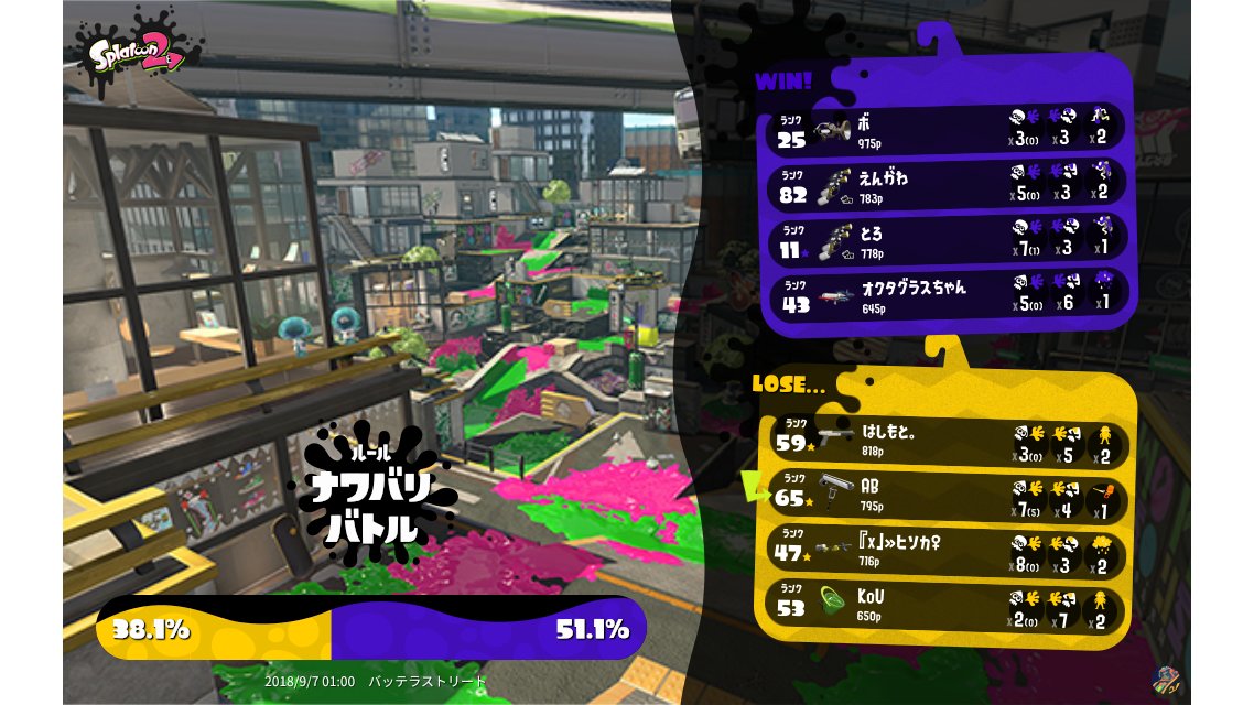| Mode | Turf War - Regular Battle | |||||||||||||||||||||||||||||||
