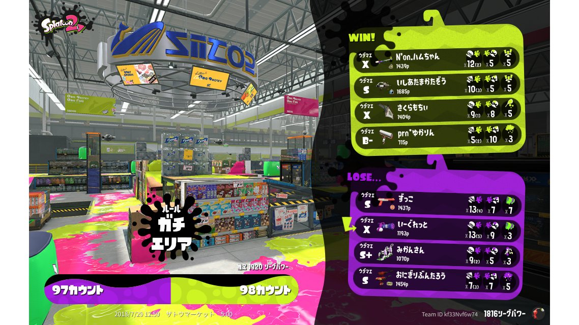 | Mode | Splat Zones - League Battle (Quad) | ||||||||||||||||||||||||||||