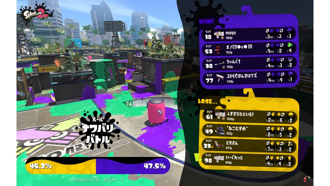 | Mode | Turf War - Regular Battle | |||||||||||||||||||||||||||||||||||||