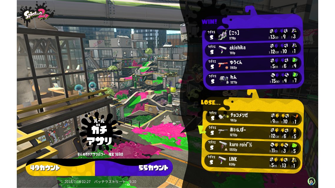 | Name | Weapon | Level | Rank | Inked | k+a/sp | k/d |