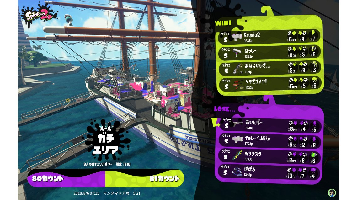 | Mode | Splat Zones - Ranked Battle | |||||||||||||||||||||||||||||||||||||