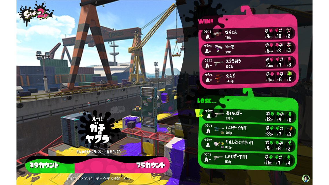 | Name | Weapon | Level | Rank | Inked | k+a/sp | k/d |