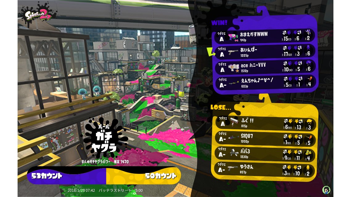 | Name | Weapon | Level | Rank | Inked | k+a/sp | k/d |
