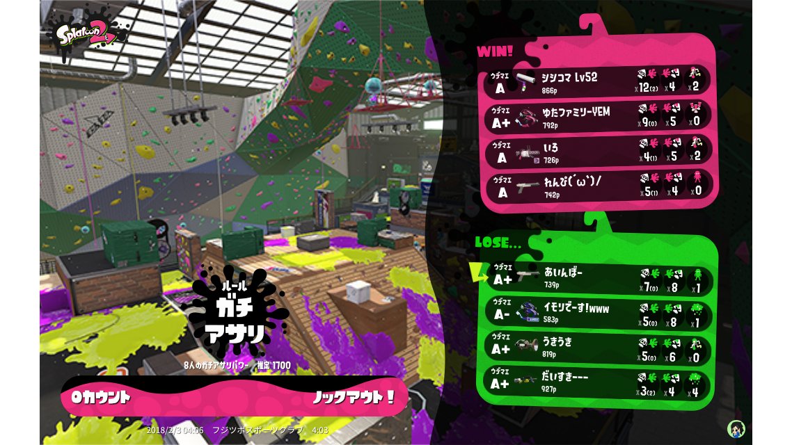 | Name | Weapon | Level | Rank | Inked | k+a/sp | k/d |