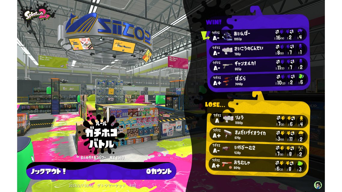 | Name | Weapon | Level | Rank | Inked | k+a/sp | k/d |
