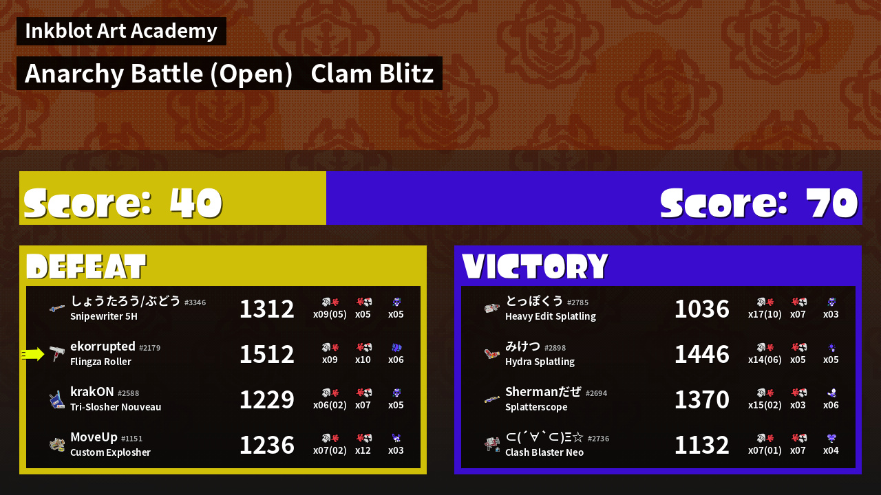 | Mode | Clam Blitz - Anarchy Battle (Open) | ||
