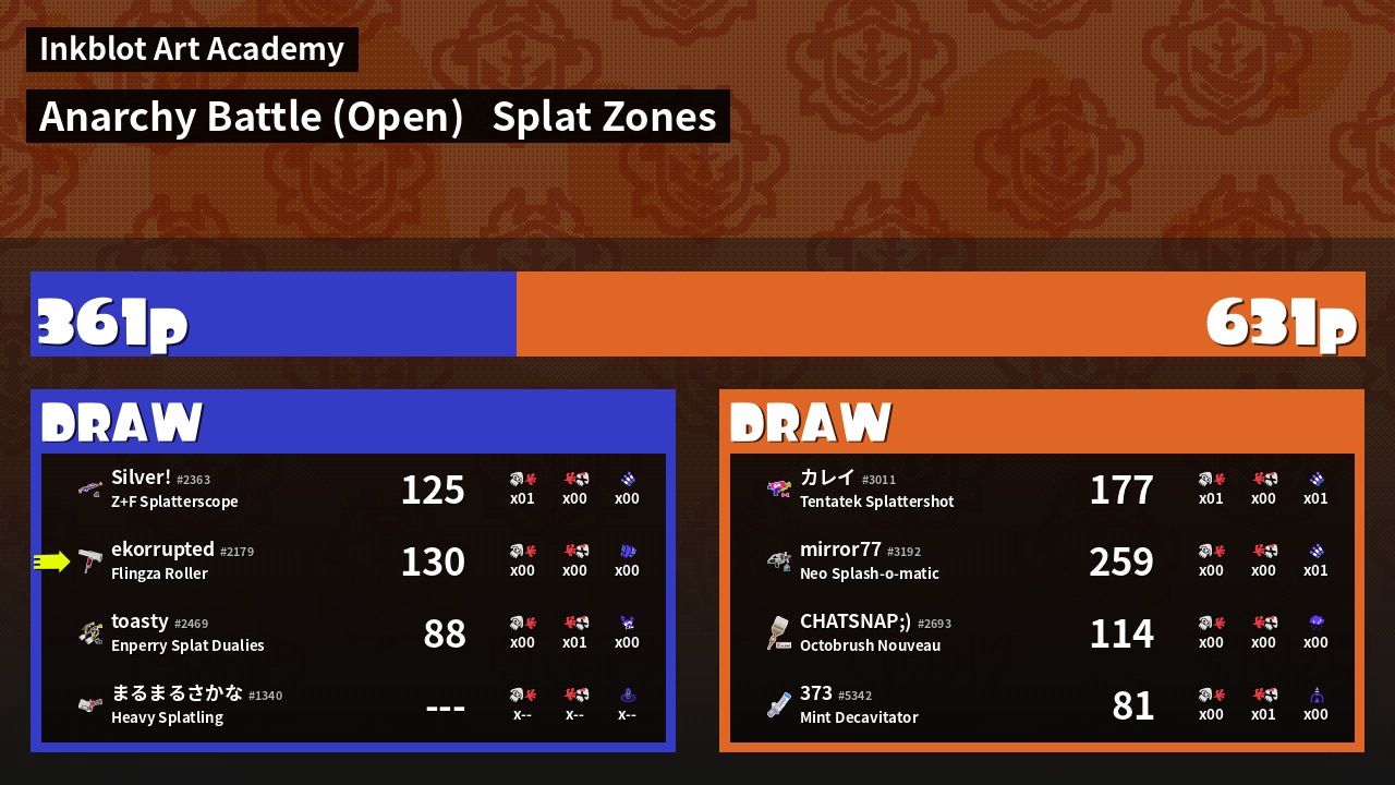 | Mode | Splat Zones - Anarchy Battle (Open) | ||