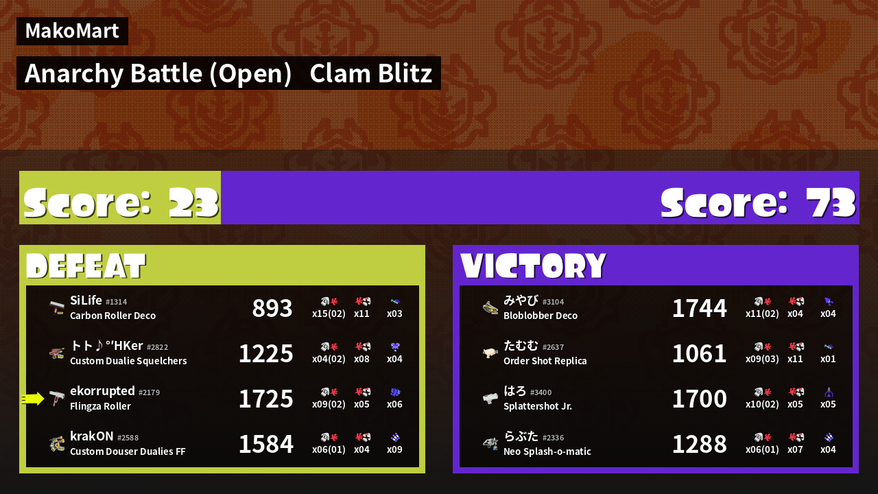 | Mode | Clam Blitz - Anarchy Battle (Open) | ||