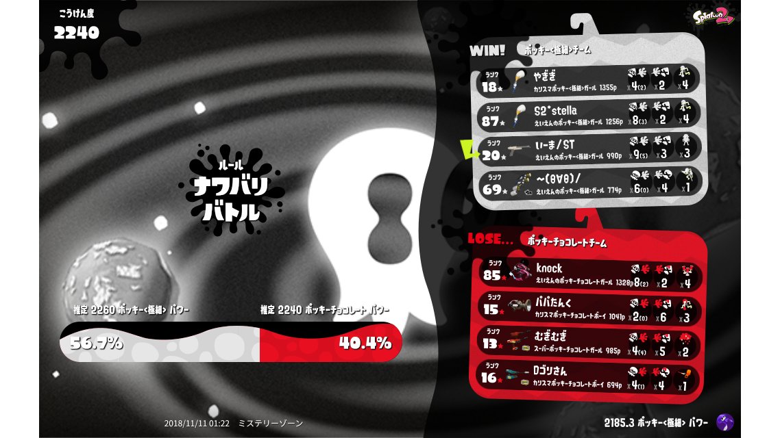 | Splatfest Title | ポッキー<極細> Queen → ポッキー<極細> Queen | |||||||||||||||||||||||||||||||