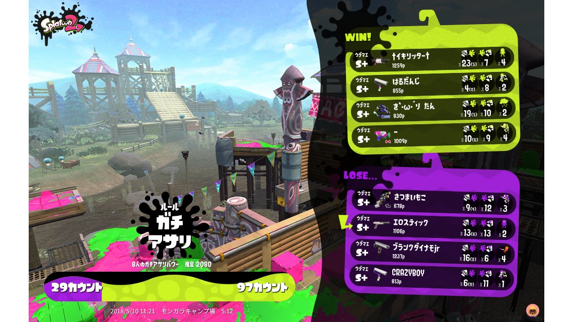 | Name | Weapon | Level | Rank | Inked | k+a/sp | k/d |