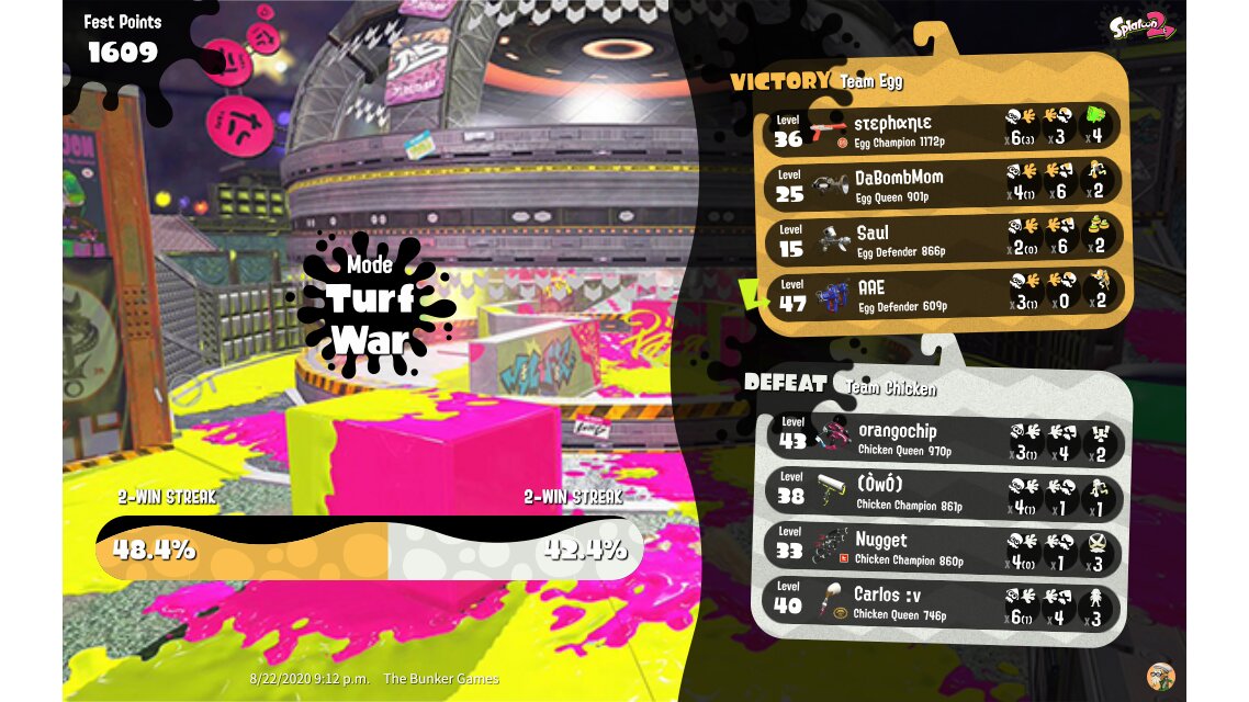 | Mode | Turf War - Splatfest (Normal) | ||||||||||||||||||||||||||||