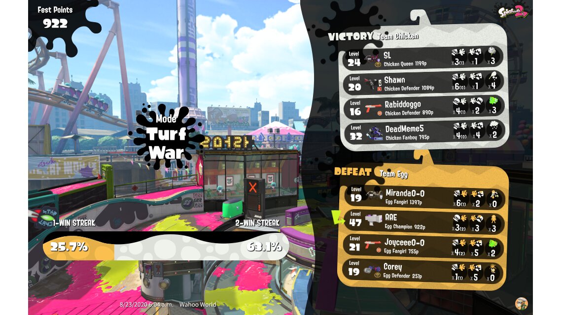 | Mode | Turf War - Splatfest (Normal) | |||||||||||||||||||||||||||||||