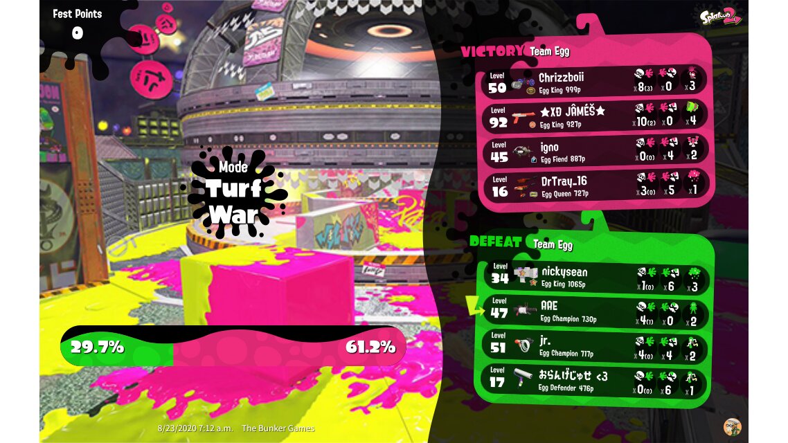 | Mode | Turf War - Splatfest (Normal) | |||||||||||||||||||||||||||||||