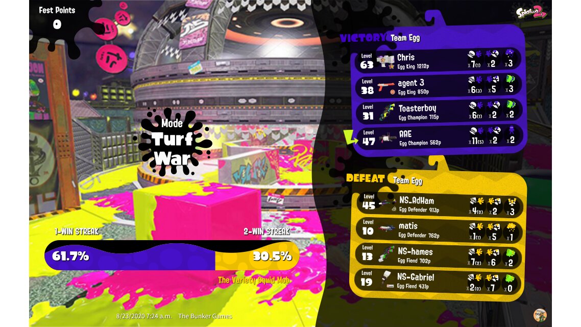 | Mode | Turf War - Splatfest (Normal) | |||||||||||||||||||||||||||||||
