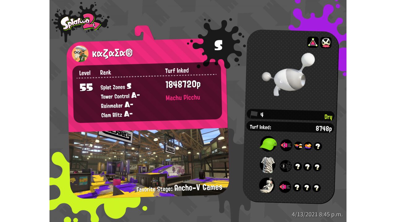 | Mode | Splat Zones - Ranked Battle | |||||||||||||||||||||||||||||||