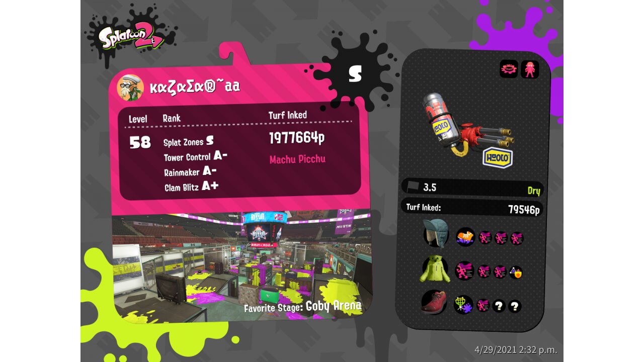 | SplatNet Battle # | 2,725 | |||||||||||||||||||||||||||||||