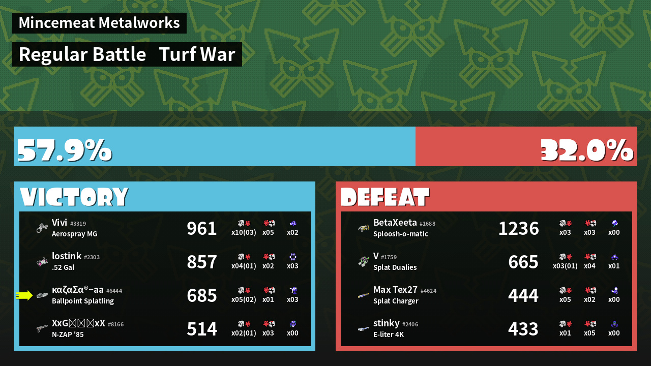 Kills / Deaths | 3 + 2 / 1 > Kill Ratio: 3.00 | ||
