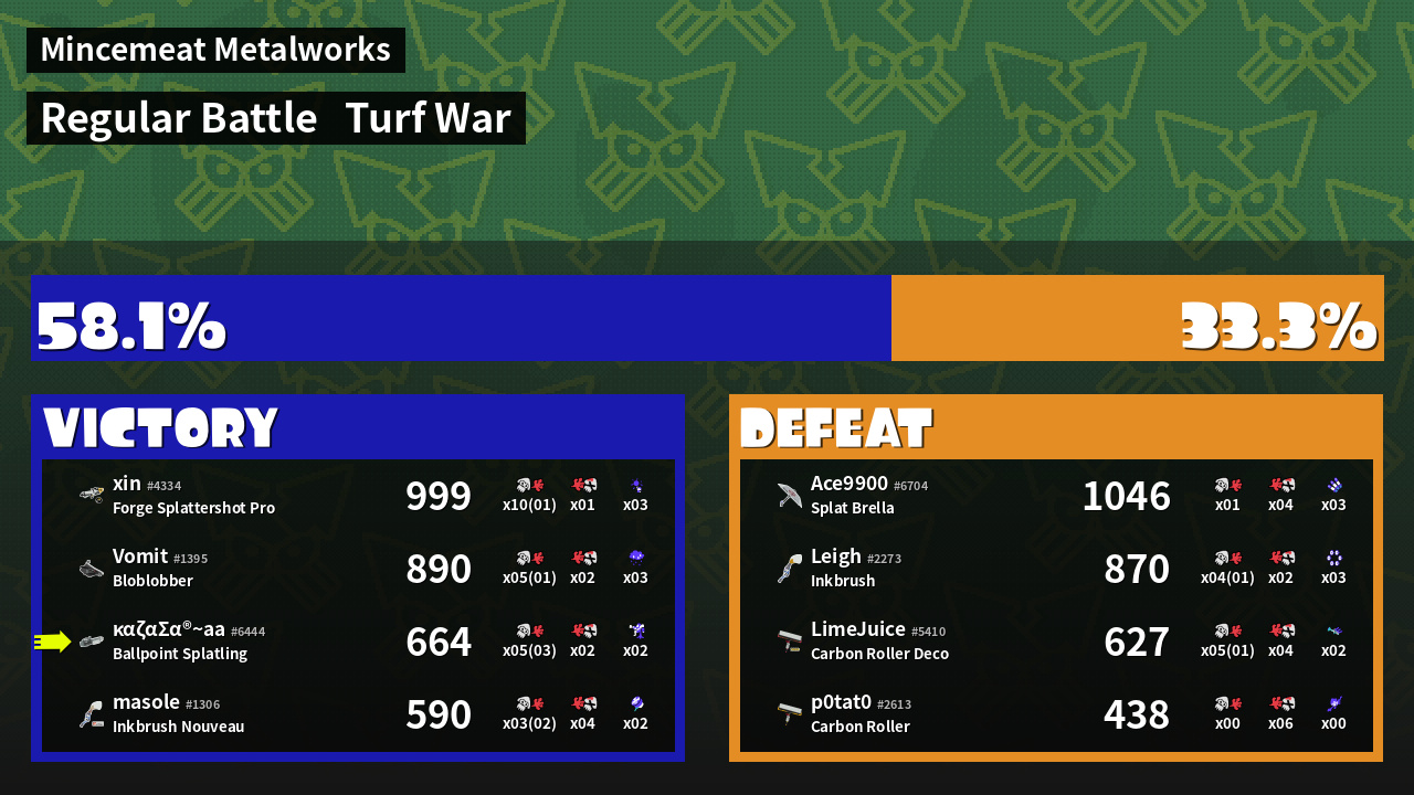 | Mode | Turf War - Regular Battle | ||