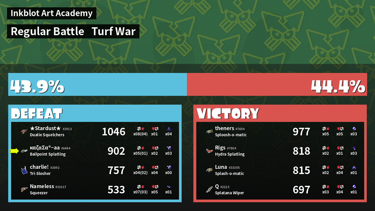 Name | Weapon | Inked | ![]() |